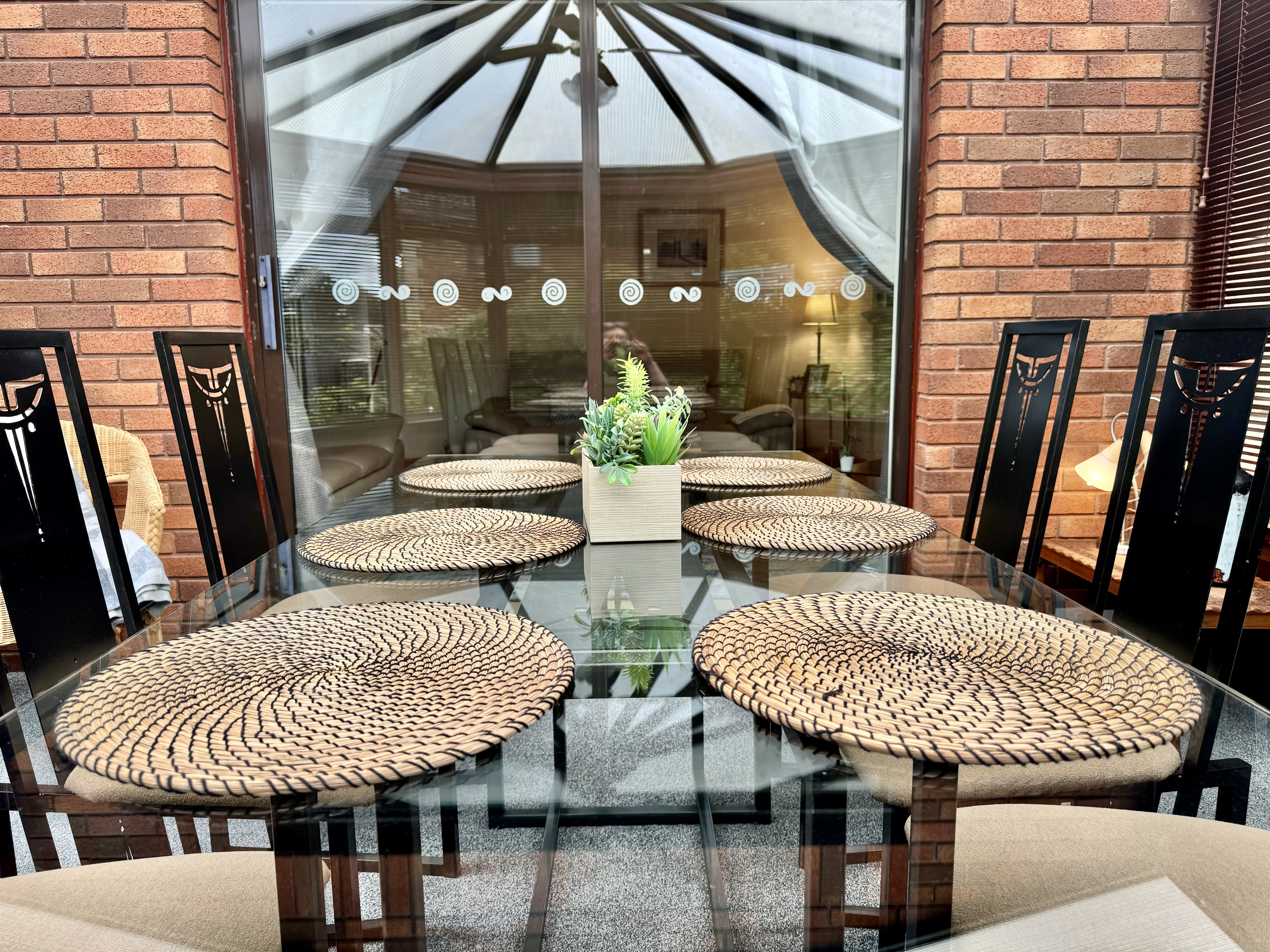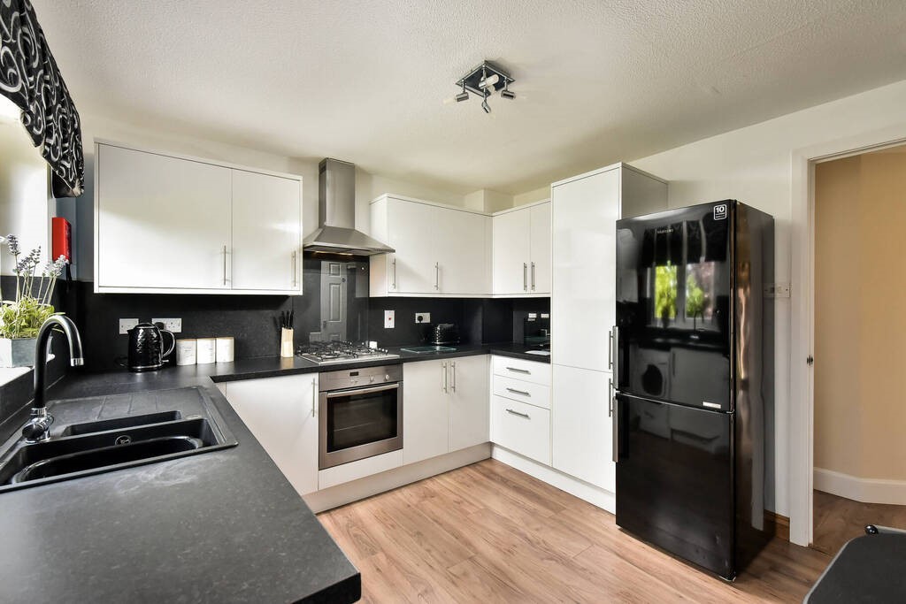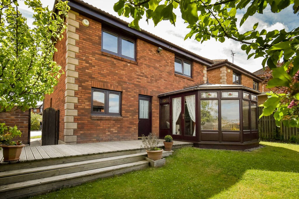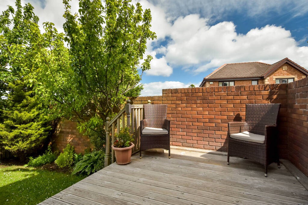 The modern, fully equipped kitchen sits to the rear of the property and has direct access to the secure, south-facing garden. The bright and spacious lounge offers plenty of comfortable seating — a great place for everyone to relax after a day of golfing, sightseeing, shopping, or simply enjoying St Andrews. Sliding doors lead to a large conservatory with dining space for up to eight guests, opening onto the lawned garden with decking, outdoor furniture, and a barbecue for guest use.