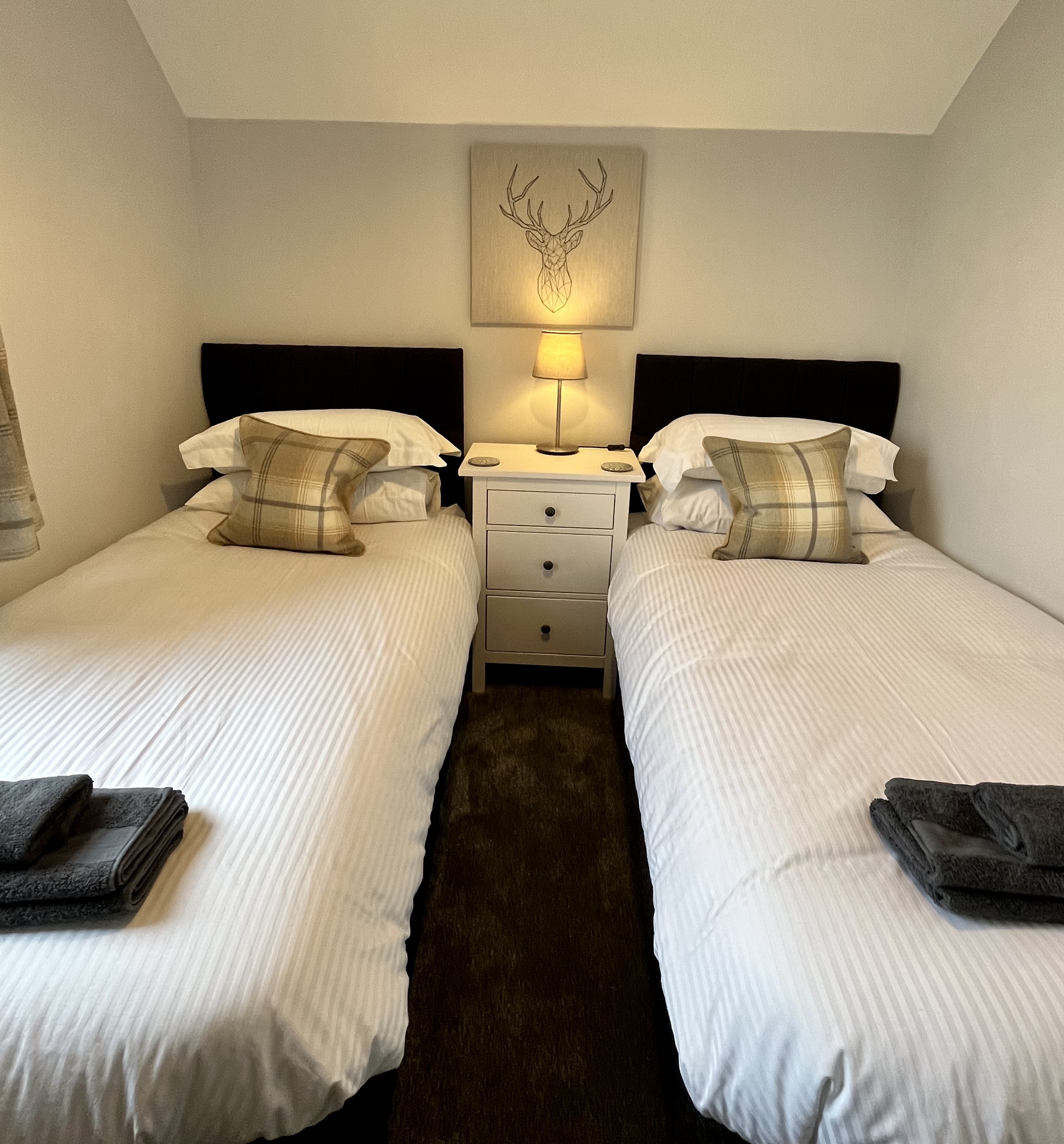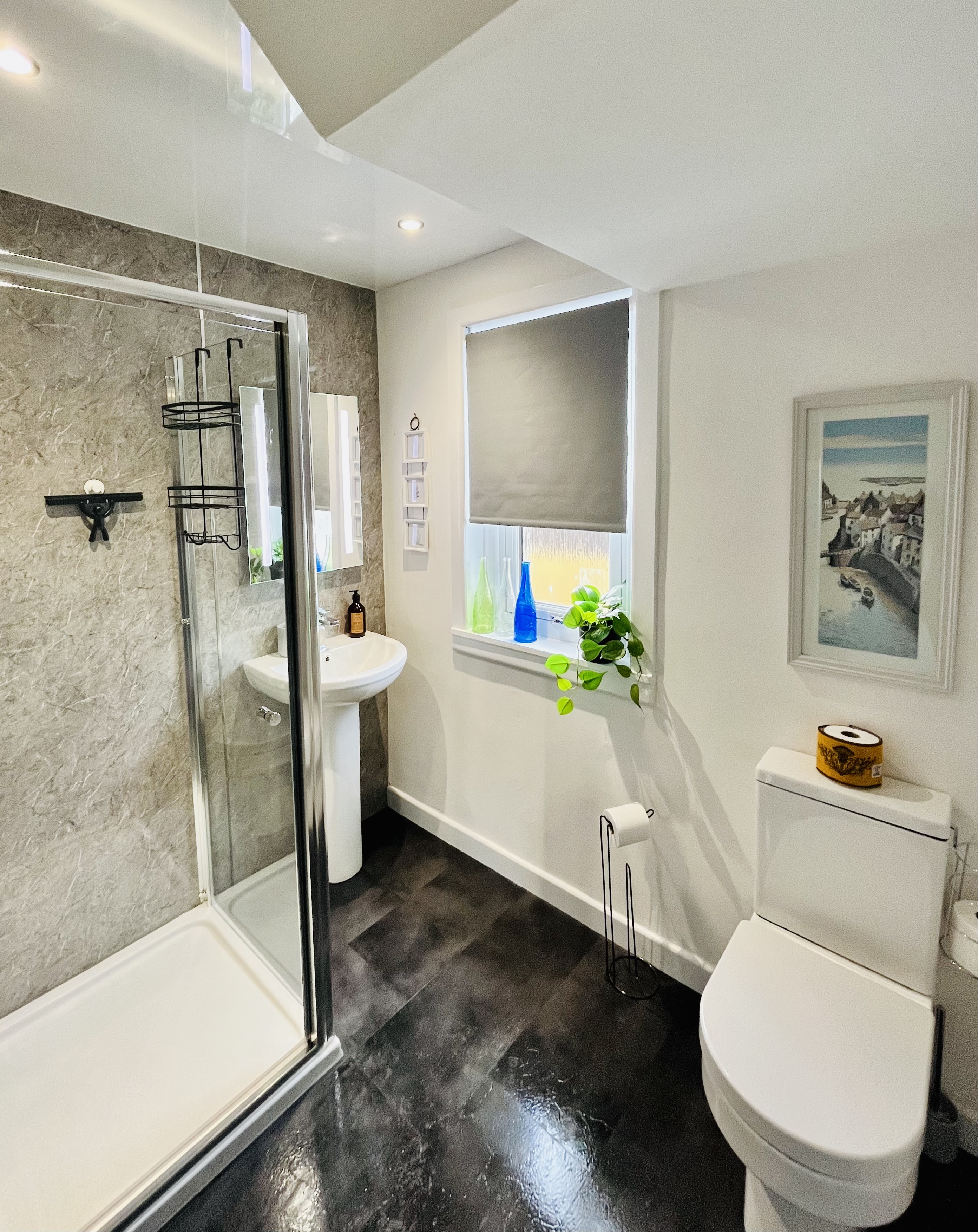 Upstairs, you’ll find three inviting bedrooms. The first is a generous super king room that can be configured as twin beds on request. The second is a stylish and comfortable king-size room, and the third is a cosy twin — perfect for families or friends. Mar House also offers two contemporary shower rooms, one conveniently located on each floor.